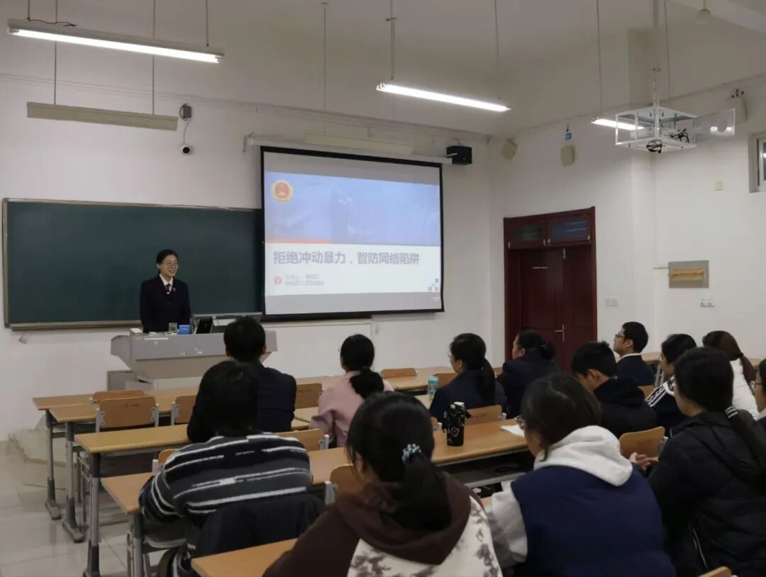 为引导学生增强法治意识,德城区人民检察院第三党支部党员景旭红,以《拒绝冲动暴力,智防网络陷阱》为题,聚焦校园安全,围绕刑事犯罪、电信诈骗等学生关切问题,以案例分析、法条解读的形式,线上线下结合向全院学生开展法治宣讲,多方面提升学生自我保护能力。
