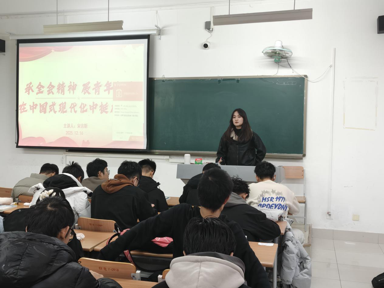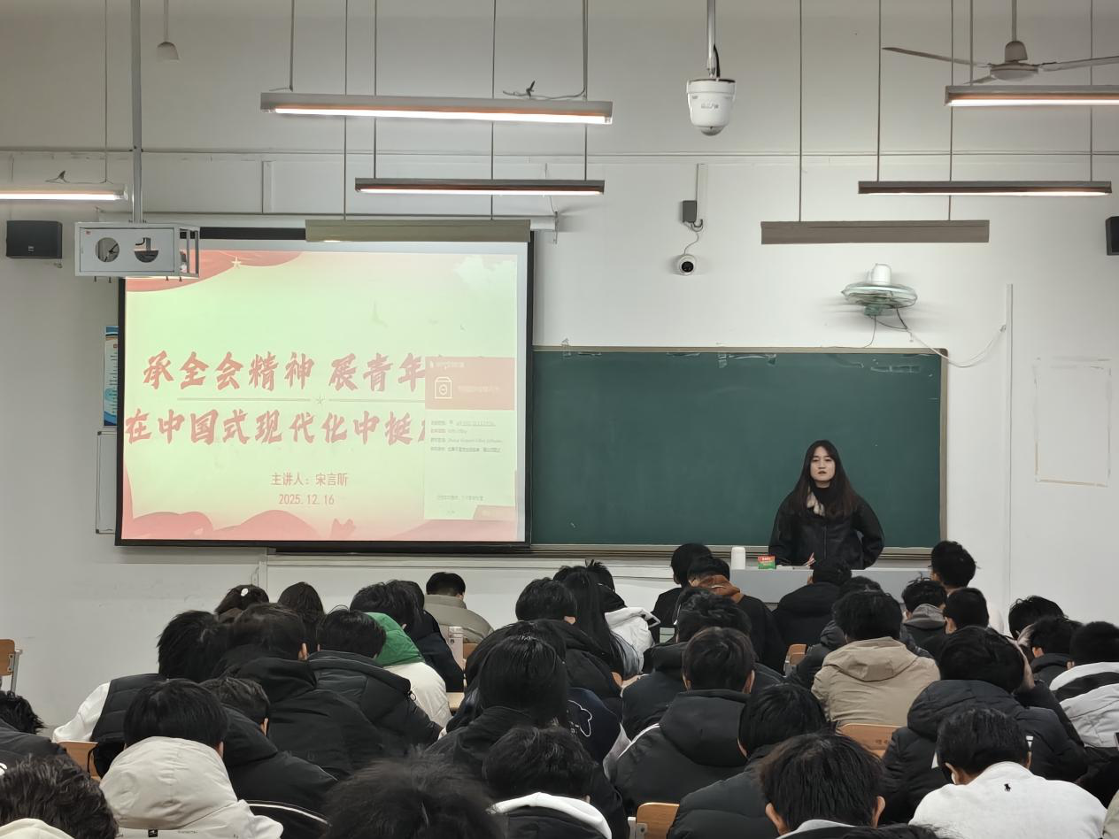 12月16日,辅导员宋言昕以“承全会精神、展青年担当 在中国式现代化中挺膺前行”为题,向2024级学生开展主题宣讲。