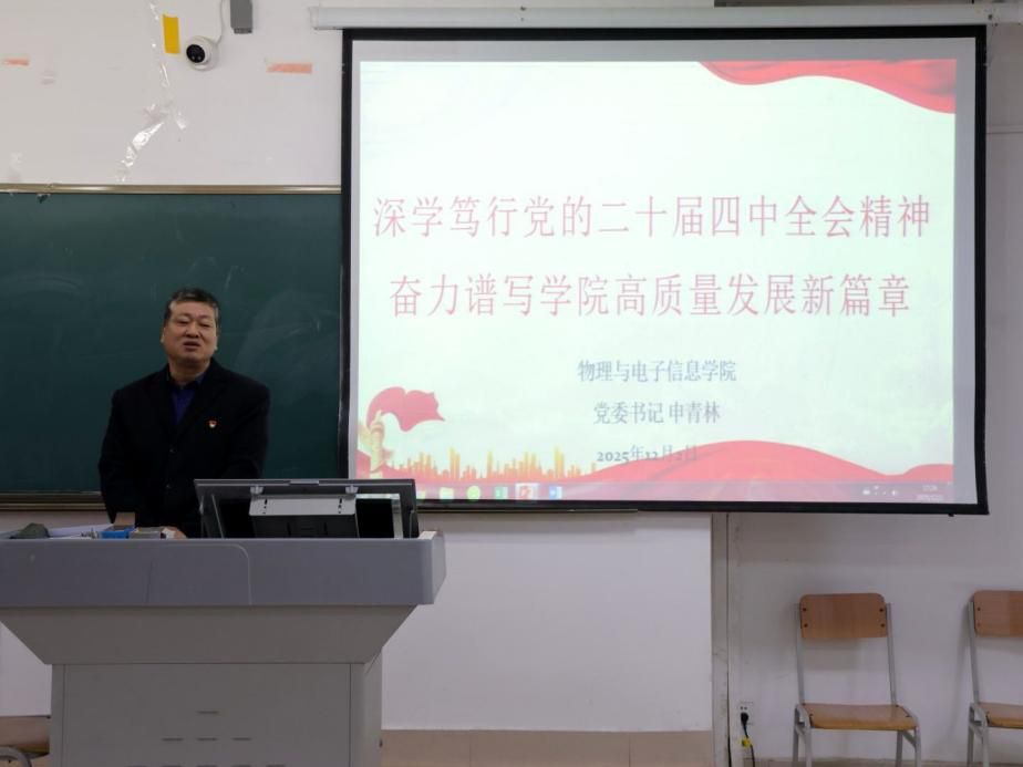 12月11日,学院教授李海彦为物理学专业学生开展党的二十届四中全会精神宣讲。