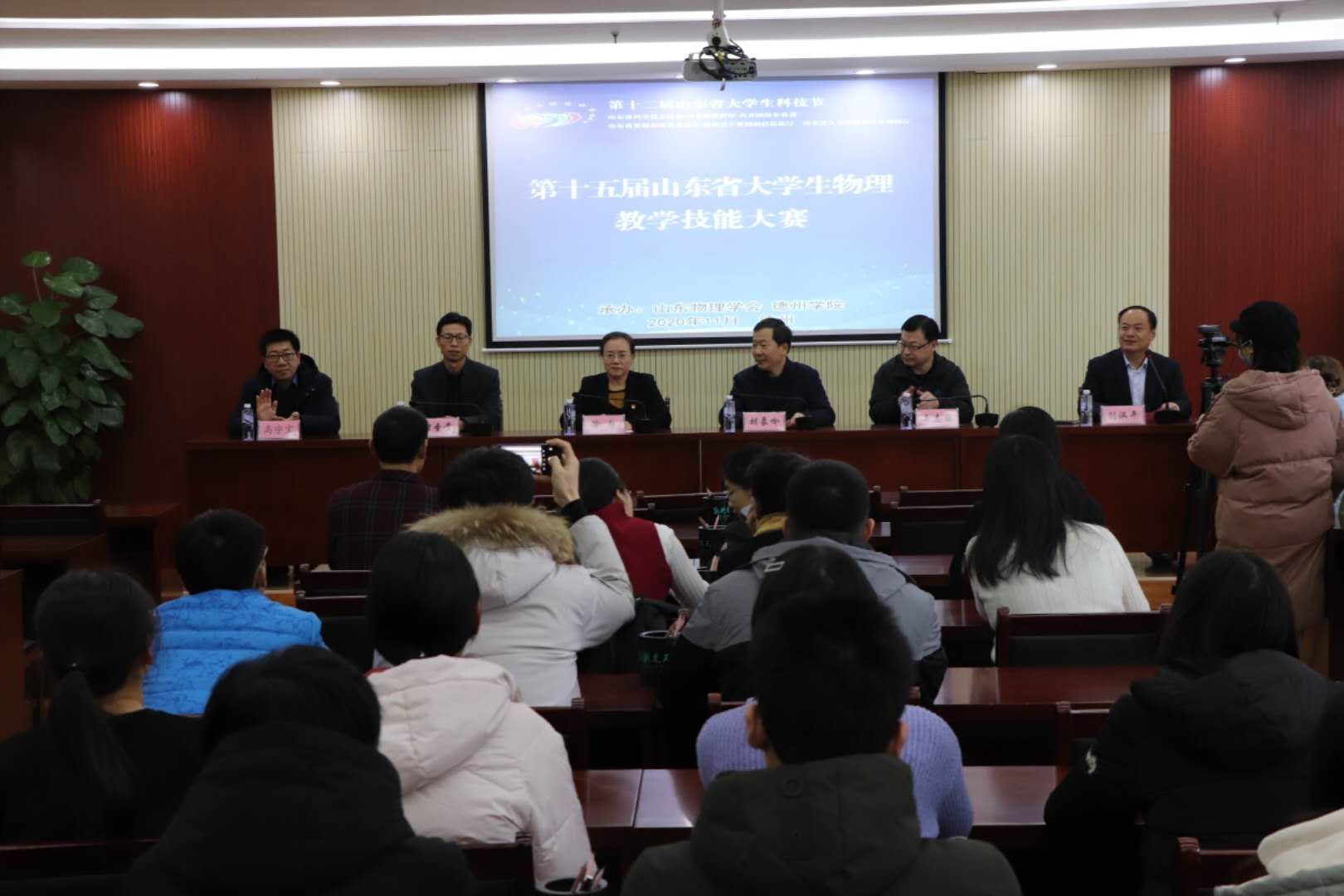11月27日至11月29日,第十五届山东省大学生物理教学技能大赛在我校举行。大赛在山东物理学会秘书处领导下,由山东物理学会大学生物理教学技能大赛委员会依照大赛章程制定比赛方案和组织实施,并由我校太阳网集团tcy8722具体承办。太阳集团tcy8722党委委员、副校长徐静教授、山东省物理教学技能大赛负责人、曲阜师范大学胡象岭教授、山东理工大学物理与光电工程学院院长付圣贵教授、聊城大学物理科学与信息工程学院赵汝木教授、德州市教育教学研究院高中物理教研员岳志国高级教师和太阳网集团tcy8722院长刘汉平等领导、专家出席本次比赛。来自全省16所高校的169名选手参赛。