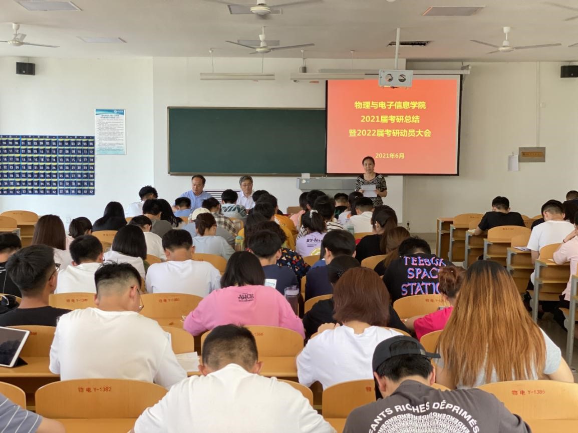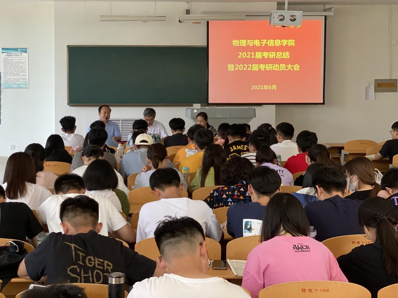 为提升学生考研兴趣和信心,调动学生的考研积极性,帮助考研同学有效率的进行复习,促进同学们能够挖掘自身的潜能,找到适合自身的学习方法。6月11日下午,太阳网集团tcy8722于明理楼0126教室举行了2021届考研总结大会暨2022届考研动员大会。本次会议由太阳网集团tcy8722党总支书记赵庆福主持,院长刘汉平,系主任、班主任以及辅导员老师,17级优秀毕业生参加本次会议。