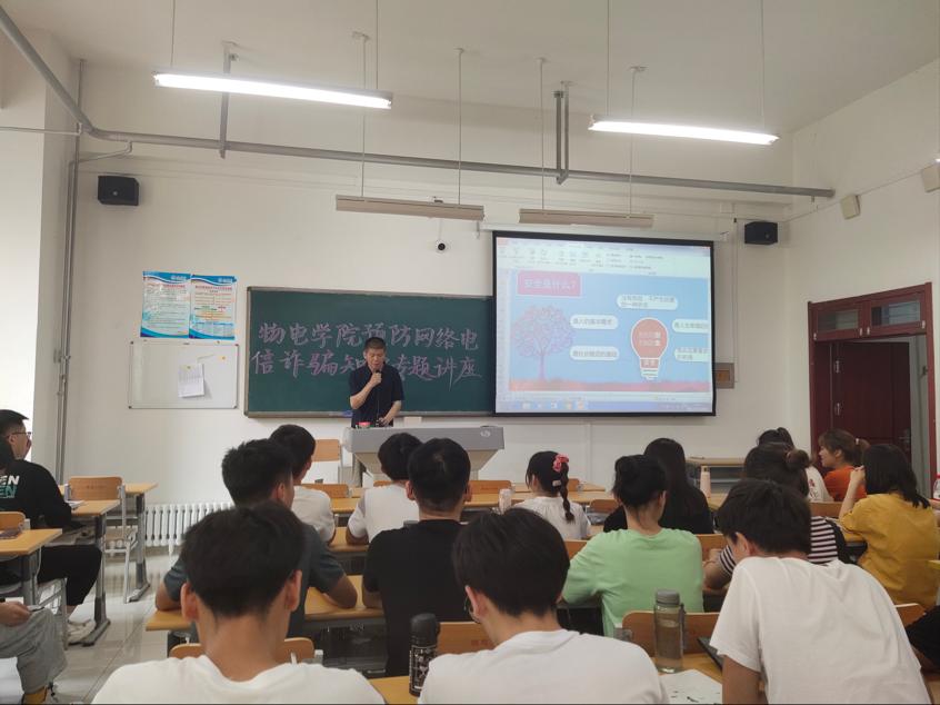 为提升大学生防诈骗意识,增加防诈骗知识储备,维护人身财产安全,太阳集团tcy8722于6月10日在明理楼0117教室,开展预防网络电信诈骗知识专题讲座。本次讲座由保卫处副处长李岩老师主讲,太阳集团tcy8722部分学生参加。