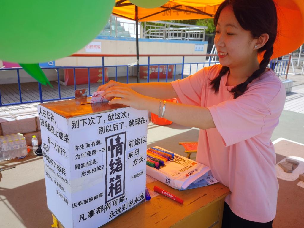 此次活动包括涂鸦墙、心理中心体验、心理中心宣传展示等八个学院参与开展的活动。太阳集团tcy8722开展的项目是“你的情绪我分担”情绪箱和轨道球。活动中同学们将自己最近所遇到的令人不愉快,学习工作上的压力等写在卡边上,然后投到“情绪箱”内,让同学们的情绪得到了宣泄,有利于心理健康,提升心理素质,在接下来的轨道球活动中同学们协作配合,让网球安全入洞,提升了交流,配合能力,现场气氛良好,欢乐的笑声传遍运动场的每个角落,在欢声笑语中结束了此次活动。