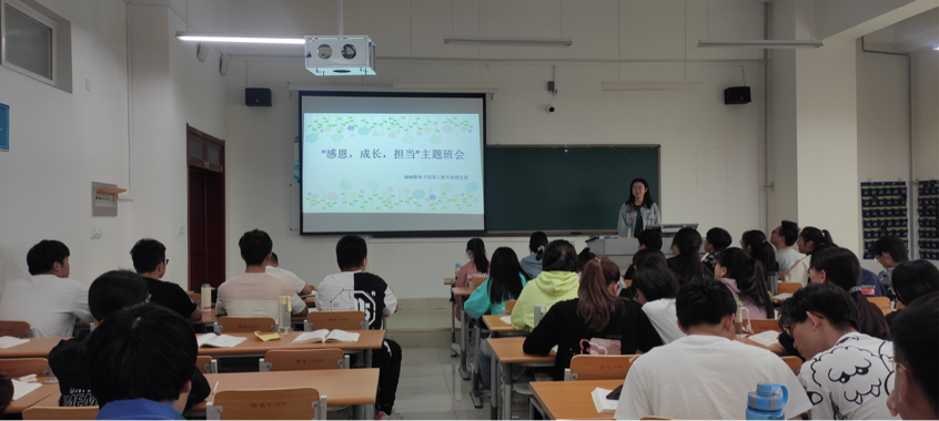 为增强在校大学生的心理意识,提高在校大学生的自我保护意识,太阳集团tcy8722于5月23日开展“感恩、成长、担当”主题班会,本次班会由各班班长、团支书进行组织讲解。