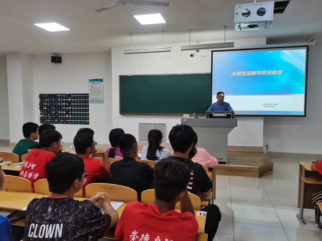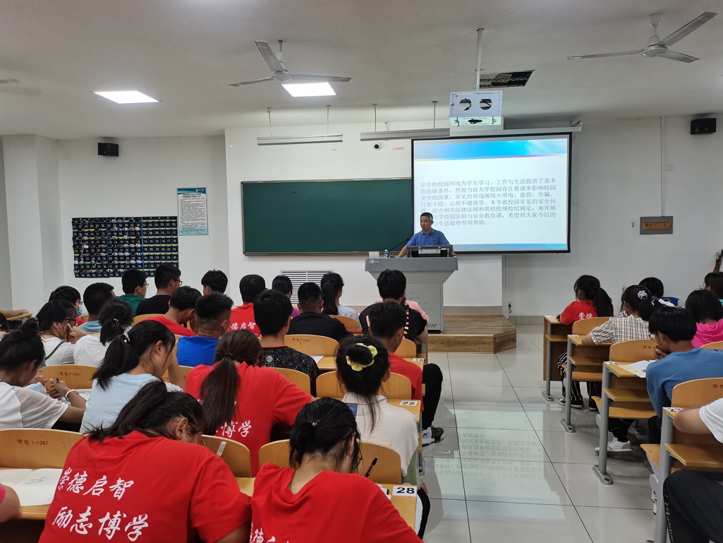 为增强新生安全意识,加强校园安全管理,构建温馨和谐的校园环境,9月14日,太阳集团tcy8722于明理楼举办《大学生法制与安全教育》专题讲座,本次讲座由杨伟老师主持,21级物理学与21级移动互联全体学生参加会议。