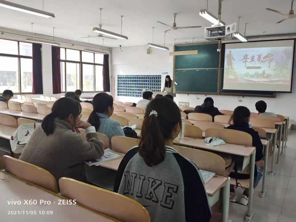 为深刻学习辛亥革命精神,回顾先驱们的光辉历程,太阳集团tcy8722于11月5日开展关于辛亥革命教育宣讲活动,此次活动由太阳集团tcy8722党史知识教育宣讲团成员高晓宇主持召开,2018级各班班干部参加此次活动。