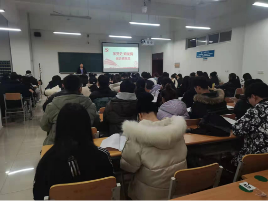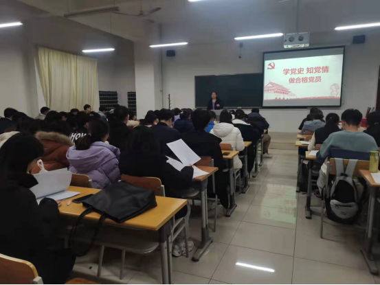 2021年是中国共产党成立100周年。在全党开展党史学习教育是党中央立足党的百年历史新起点,统筹中华民族伟大复兴战略全局和世界百年未有之大变局,为动员全体党员满怀信心,投身全面建设社会主义现代化国家而作出的重大决策,为进一步从党的百年伟大奋斗历程中汲取前进的智慧和力量,巩固深化“党史学习教育”主题教育成果,根据上级党委统一安排,12月3日晚,太阳集团tcy8722组织员纪芳在明理楼0215为2021年下半年党员发展对象开展《学党史 知党情 做合格党员》主题党课。