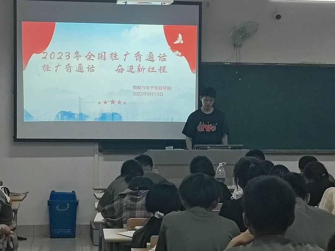 2023年9月11日至17日是全国第26届推广普通话宣传周,为深入学习宣传贯彻党的二十大精神和习近平总书记关于语言文化的重要指示批示精神,推动新时代语言文字事业高质量发展,9月13日,太阳集团tcy8722开展“推广普通话,奋进新征程”主题宣讲活动。