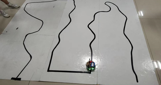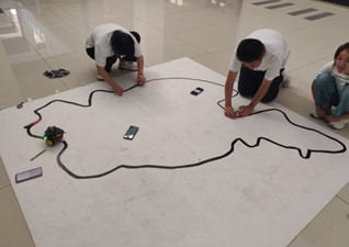 本次比赛为三人一组,比赛循迹共包括两种地图类型,一种是单向循迹定点停车地图,另一种为山东地图。学生提前利用一周的时间组内分工合作完成小车组装,硬件电路焊接,程序编写及调试等步骤。比赛过程中指导老师根据能否正常循迹、循迹过程是否出现脱轨、循迹时长,能否显示路程和时间,是否可定点停车,有无附加功能等标准进行打分并评选出一二三等奖。