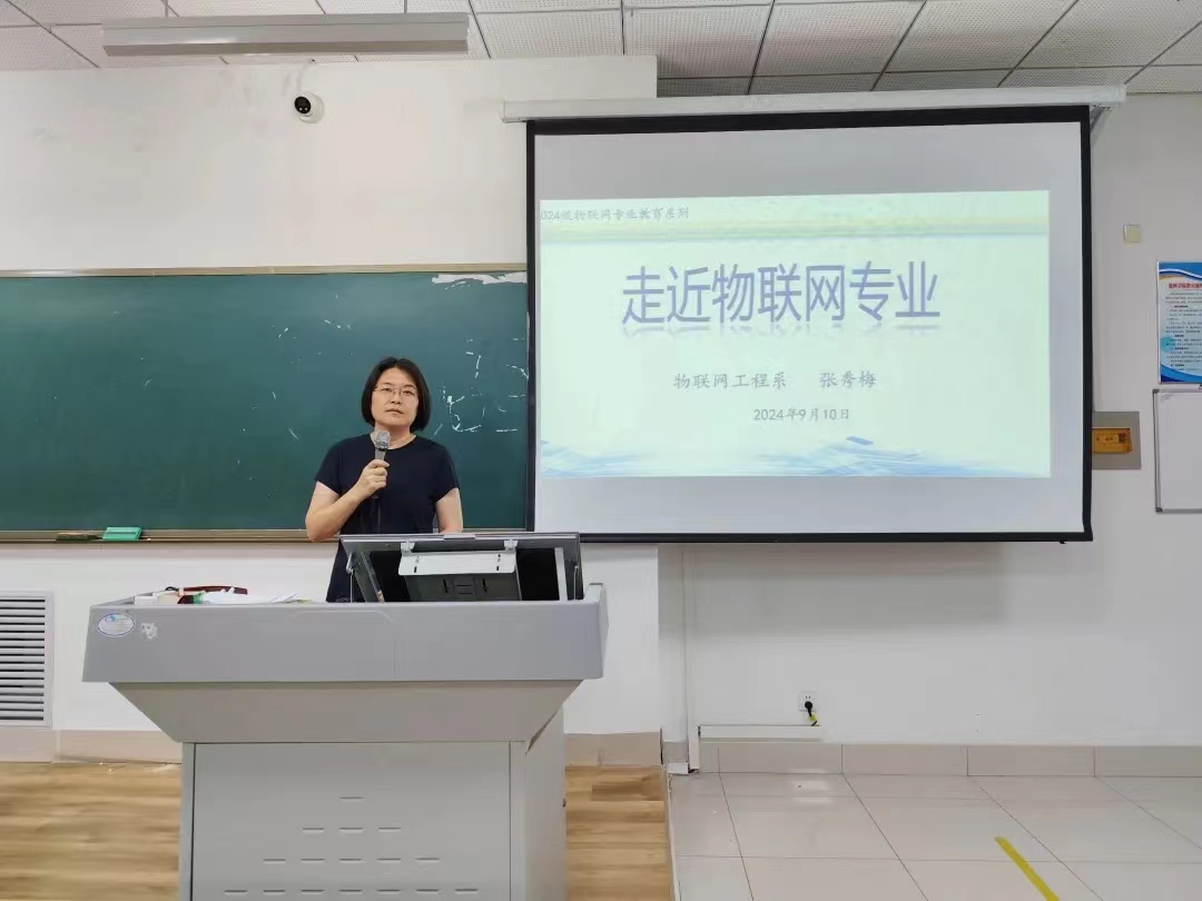 物联网专业主任张秀梅老师从专业发展概况、专业培养目标及培养方案等方面,向同学们详细介绍了物联网工程专业等基本情况,使同学们对专业更深入的了解。随后张老师通过本专业学长学姐考研上岸的例子,鼓励同学们要努力学习,培养自己的专业能力。