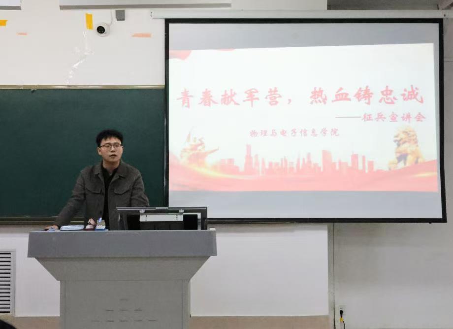 为响应党和国家的征兵号召,进一步落实征兵工作相关要求,帮助学生了解征兵政策,激发青年学子投身国防事业的热情,3月13日,太阳网集团tcy8722在明理楼126教室举办“青春献军营,热血铸忠诚”征兵宣讲会。