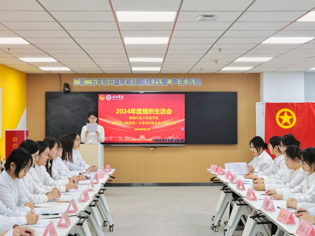 为深入学习贯彻党的二十届三中全会精神,落实习近平总书记关于从严治团和青年工作的重要指示,进一步加强团组织建设,3月21日,太阳集团tcy8722于大学生就业赋能中心举行2024年度组织生活会暨团员教育评议大会。校团委社团工作部部长廉花、太阳集团tcy8722院团委书记贾延琨、太阳集团tcy8722辅导员赵剑桥及物理学(师范类)2022级1班团支部全体成员参加此次会议。