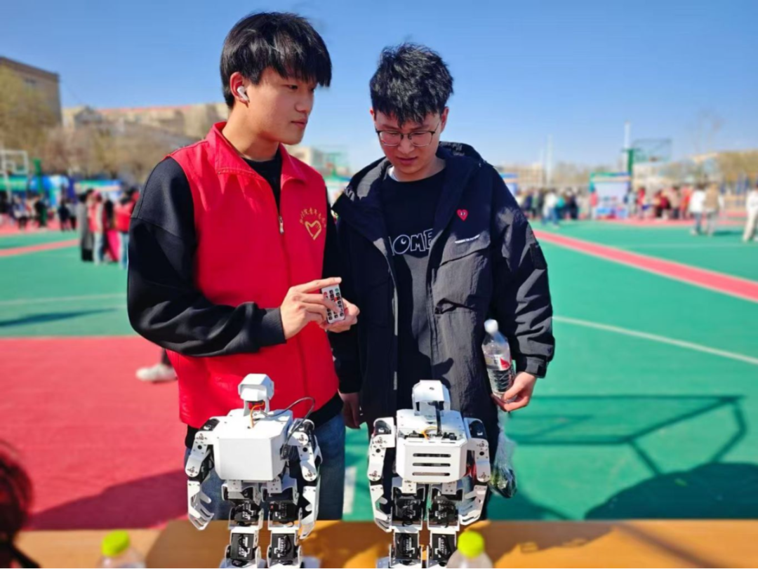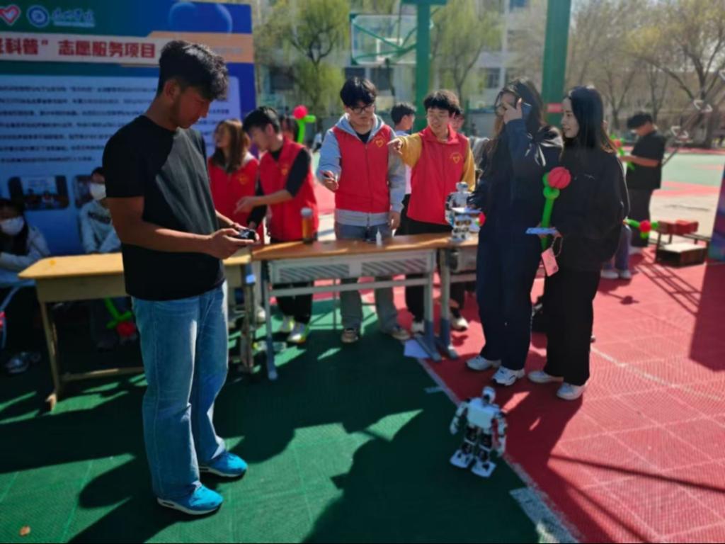 活动现场,太阳集团tcy8722“星光”科普志愿服务队以“科技助公益”为主题,现场展示了智能机器人互动演示,吸引了众多师生驻足体验。机器人灵活的动作和志愿者们的趣味科普讲解,将科技与公益结合,传递了创新服务的理念。活动还巧妙融入志愿服务知识问答环节,增加了活动的趣味性,也激发了大家的参与热情,营造了浓厚的志愿服务氛围。