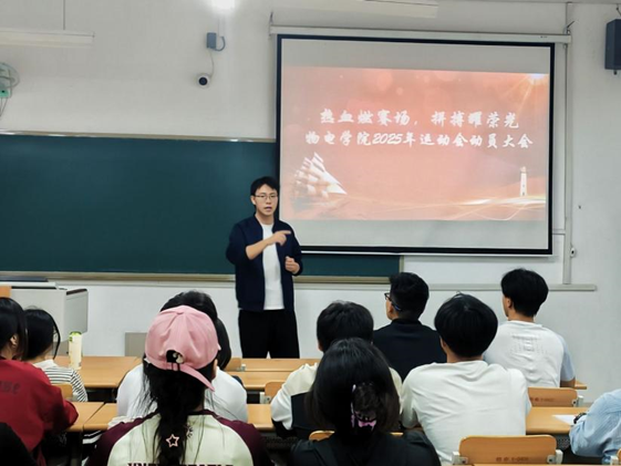 会上,团委书记贾延琨老师着重强调运动员的健康与科学训练的重要性。他提醒运动员们要关注天气变化,及时添减衣物,避免因身体不适而干扰训练和比赛,合理安排训练强度和时间,以良好状态迎接赛事。针对后勤保障工作,学院学生会部门要充分发挥职能作用,认真做好各项后勤准备,全力保证运动员处于最佳状态。最后,贾老师寄语全体运动员,以运动会为契机,展现坚韧品质,展现物电风采,在体育拼搏中实现德智体美劳协同发展。