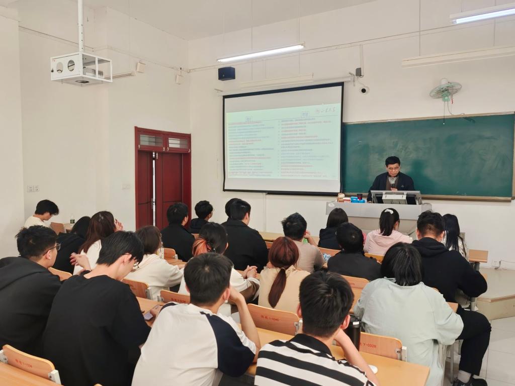 讲座中,陈言俊教授以习近平总书记在全国教育大会的重要论述为引,从教育部深化高校双创改革的政策出发,系统性阐述了学科竞赛在当下的重要意义;他指出学科竞赛不仅是对学习成果的检验,更是激发学生创新思维、锻炼学生实践能力的重要平台。随后,他讲述了学科竞赛的发展历程,通过解读国家政策并分析项目计划,为我院学科竞赛体系建设提出建议,他表示学校要鼓励师生积极参与,以赛促学,以学强赛,加强创新创业教育课程的开展力度,强调了“普及化”“系列化”“复合化”“个性化”的指导思想。最后,陈教授介绍了部分大学生竞赛项目,并结合成功案例,深入细致地向同学们介绍了竞赛的具体实施路径,让学生真正认识到学科竞赛对自身成长和发展的重要意义。