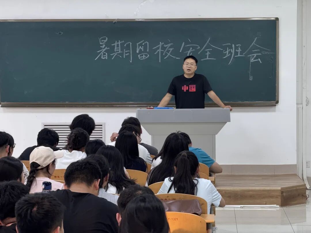 辅导员们面向全体留校学生开展了系统、深入的安全教育。结合学院学科特点和暑期校园管理实际,聚焦重点领域,精准施策,通过案例分析、制度解读、要点提醒等多种形式,着重强调了以下关键安全注意事项:一是强化人身财产安全, 牢记宿舍防火防盗要求,严禁使用违规电器,做到人走断电锁门;结合近期案例剖析常见电信诈骗手法,提醒学生提高警惕,守好“钱袋子”。二是交通出行安全,普及校园及周边交通安全知识,强调骑行电动车佩戴头盔、遵守交规的重要性。三是关注食品健康与防暑,倡导健康饮食与规律作息,提醒学生做好防暑降温措施,保持宿舍通风卫生,关注自身健康状况。四是筑牢网络与思想防线,引导学生文明上网,理性发声,自觉抵制不良信息,维护清朗网络空间。
