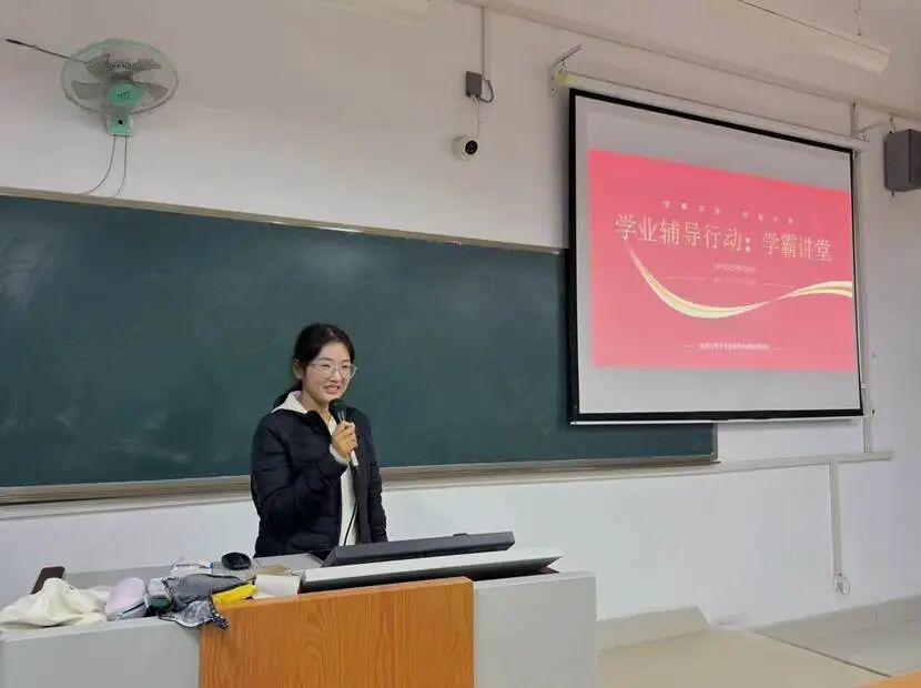 电子信息工程专业董双绮,先是以“学科知识树”形式拆解核心考点,在高等数学板块,详细介绍了学习方法,还分享了“番茄工作法结合学科刷题”的时间管理策略。司宝鑫则是结合自身学习经历,详细为同学们介绍每个科目的学习技巧以及注意事项。
