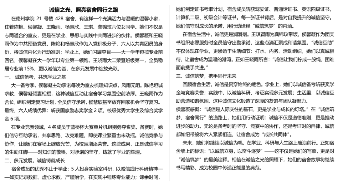 这些作品既展现了同学们对宿舍诚信主题的深入思考,又凸显了他们的创作才华。这些作品将成为校园的独特亮点,引导更多人践行诚信美德,释放创造力,共同打造充满正能量的校园生活空间。