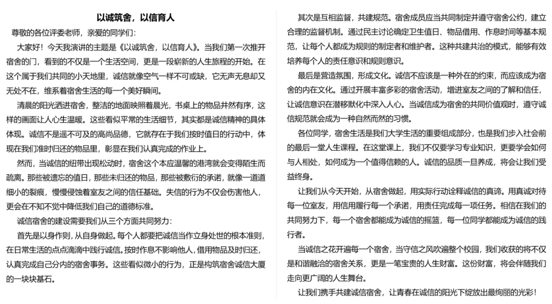 诚信践行的千万种模样,每一种都是从心出发的责任坚守。希望大家都能真诚地守护诚信与热爱宿舍生活,构筑最温暖的集体!此次活动的开展,为同学们搭建了一个展现诚信内涵、激发创新活力、营造和谐氛围的舞台,相信在此次活动的倡导下,太阳集团tcy8722的学子们将更珍视诚信价值,以更饱满的热情共建文明校园。