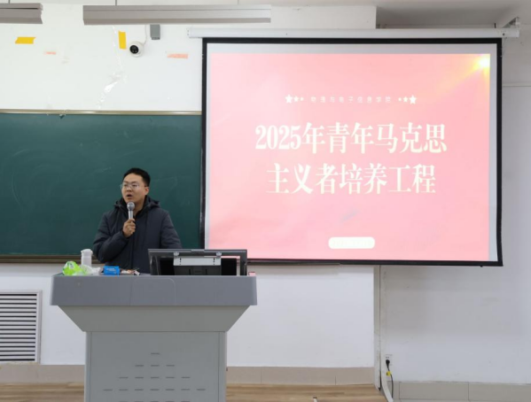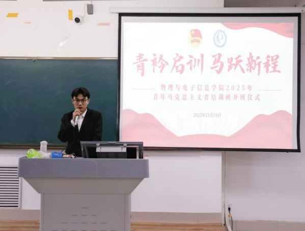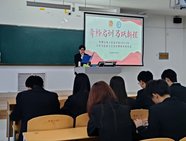 开班仪式上,辅导员赵剑桥阐述了青马工程的内涵与意义,明确了其重点培养对象为大学生骨干、青团干部、青年知识分子,并强调了青马工程对青年成长的建设性作用,让学员对青马工程有初步的了解。同时围绕党的创新理论、青年责任担当开展专题授课。他结合学院学生工作实际与基层实践案例,生动讲解青年马克思主义者应具备的政治素养与能力要求,要求学员们在服务同学、校园建设、强国建设中担当使命,在学思践悟中成长为用马克思主义中国化的最新成果武装的青年马克思主义者,为学校高质量发展与强国建设贡献青春力量。