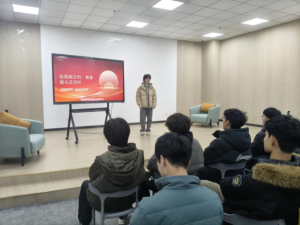 宣讲环节,多位有深入调研和服务意愿的学生代表联合解读西部计划政策。他们结合官方文件,系统梳理招募条件、服务岗位、福利待遇及后续支持等核心内容,他们结合专业特色分析岗位适配性,分享往届志愿者实践经历,让同学们清晰知晓西部计划的政策细节与实践方向,深化了对基层服务价值的理解,也明确了自身参与的可行性与发展路径。同时,他们还针对报名流程、选拔标准、后续培养等学生关心的问题进行逐一解答,并分享了志愿者在基层的职业发展路径,让同学们对西部计划有了更全面、更深入的认识。互动环节中,同学们积极提问,就服务地生活保障、专业适配岗位、考研考公优惠政策等进行交流,现场氛围热烈。