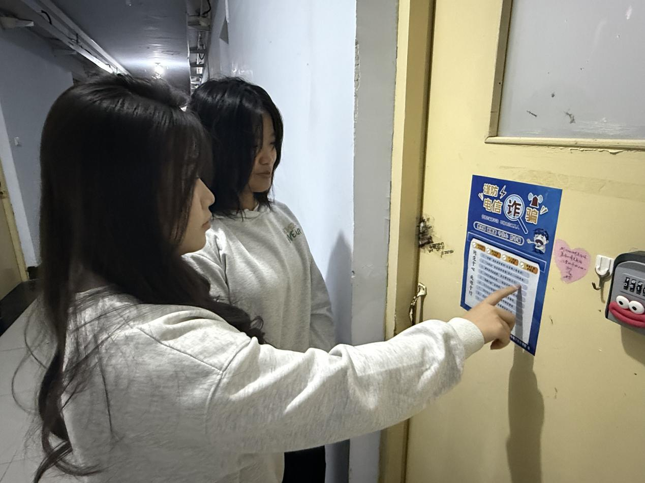 针对校园高发骗局,“X舍友”走进宿舍张贴反诈宣传页并以宿舍为单位签署反诈防骗承诺书,结合刷单返利、校园网贷等典型骗局案例,细致拆解骗子的话术套路与作案手法,切实帮助学生提升对校园诈骗的警惕性与自我保护能力。