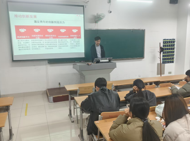 黄强老师围绕习近平总书记致全国青联十四届全委会和全国学联二十八大的重要贺信及党中央致词精神,解读青年使命与责任要求,引导学生树立正确价值观,以实际行动向团组织靠拢,争做有理想、敢担当的新时代青年。
