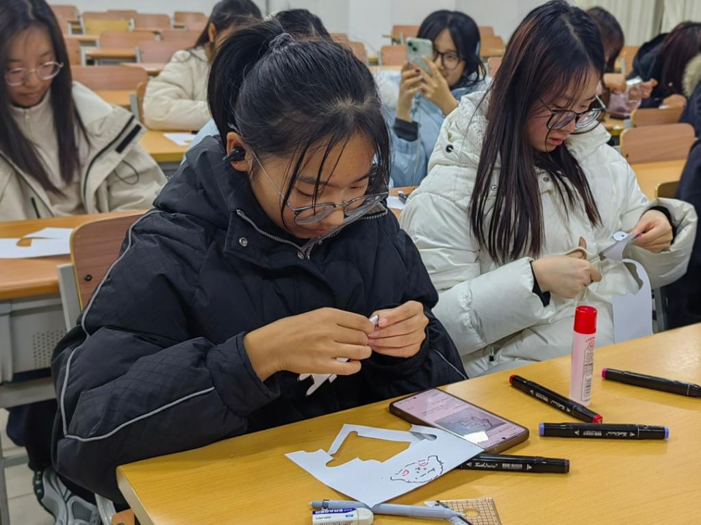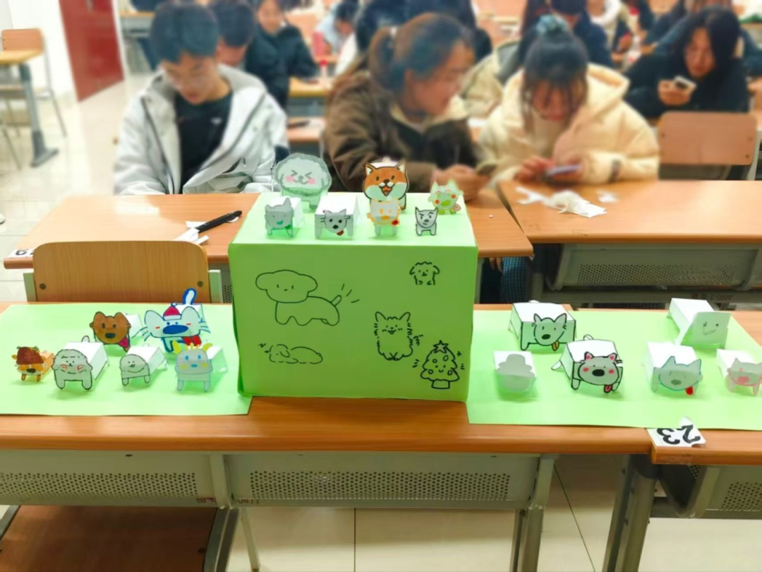 活动以创意手工体验为核心,打造了充满温度的互动场景。动手创作的过程中,大家沉浸式投入,在协作与分享中收获满满暖意。在主持人的引导下,同学们先在纸上绘出小狗的不同身体部位并裁剪成型,利用废旧纸壳制作底座,将部件精心拼接成独一无二的立体“小狗”。随后,同学们认真填写领养卡片、领取专属爱犬铭牌,进一步加深了与作品的情感联结。活动尾声,大家纷纷与自己的“专属小狗”合影留念,将这份治愈与美好定格成珍贵记忆。