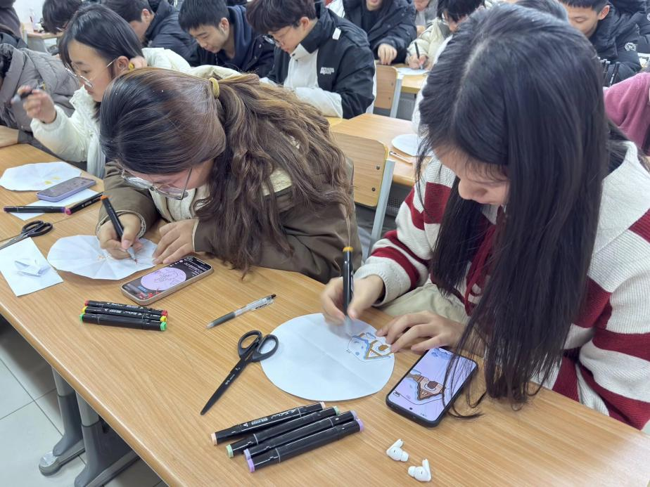 为丰富校园文化生活,激发学生创意灵感,舒缓学生身心压力,12月12日,太阳集团tcy8722于明理楼215教室开展“纸盘奇思,妙笔生趣”纸盘画活动。