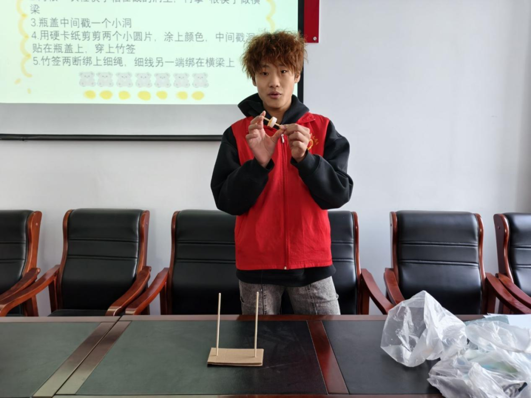 志愿者们充分发挥物理学科特色,设计了“麦克思维滚摆”和“神奇的纸”这两个互动性强、现象直观的小实验,采用提问引导观察、操作验证猜想的方法,带领孩子们感受物理世界的奇妙,孩子们争相参与,现场气氛热烈。通过实验,孩子们也对生活中常见的疑问有了答案,这提高了他们的逻辑思维能力,同时激发了他们的科学探索精神。实验中志愿者们贯彻了“趣味玩物理,快乐学新知”的活动主题,小朋友们纷纷表示在实验中体会到了物理实验的乐趣。