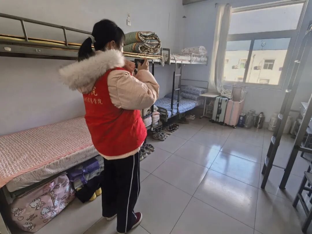 在宿舍区,检查工作在早晚两个时段有序推进。清晨,检查组重点检查学生宿舍卫生情况,细致查看宿舍卫生与内务整理情况,引导学生养成规范整洁的生活习惯。夜晚,则开展常态化查寝,逐一核实学生在寝情况,严查夜不归宿等违纪行为,同步排查违规用电、私拉电线等安全隐患,全方位筑牢宿舍安全防线。
