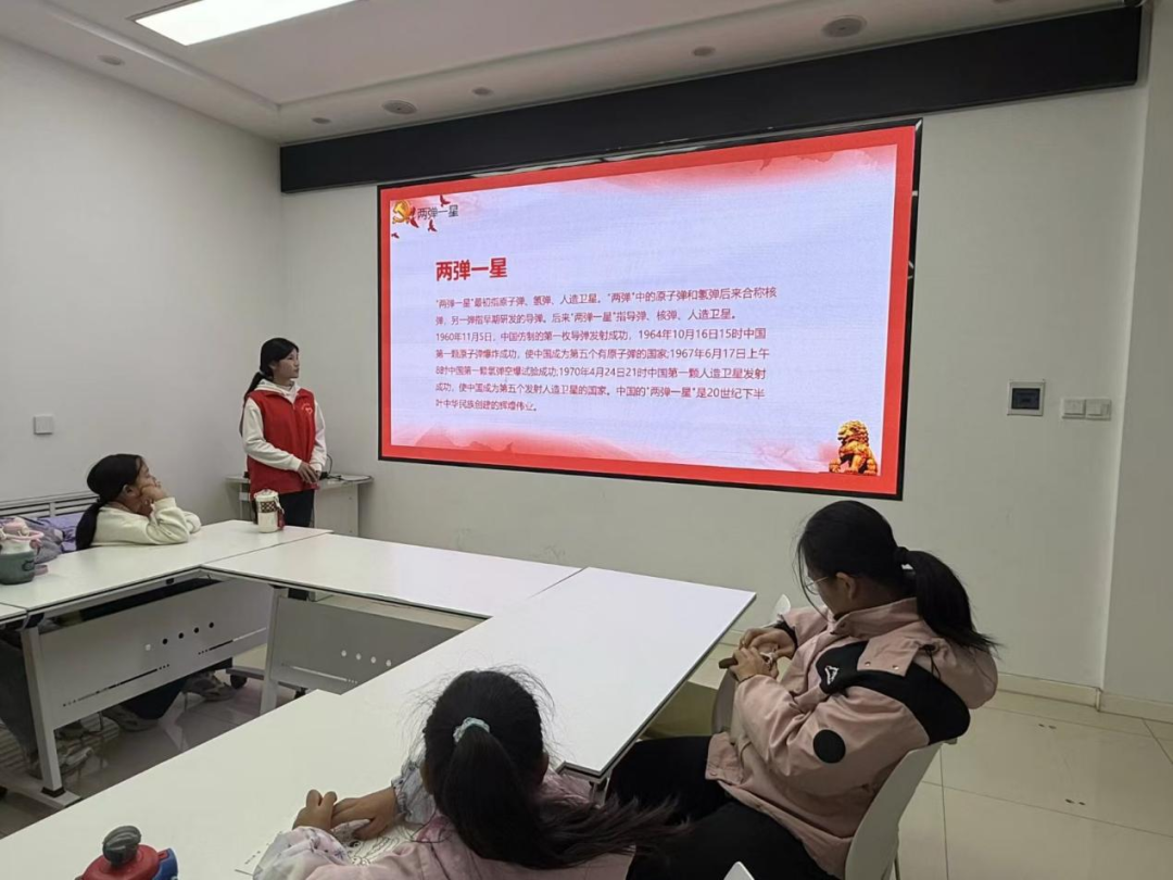 为鼓励青少年儿童以“两弹一星”元勋为榜样,培养坚韧不拔的意志,提升科学素养,12月14日,太阳集团tcy8722物联网工程专业2025级2班团支部于萧何社区开展弘扬"两弹一星"精神宣讲活动。