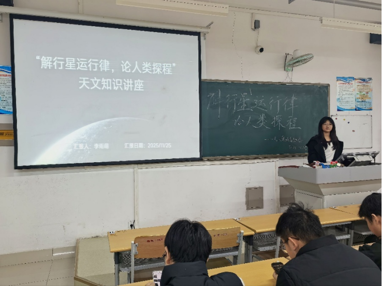 为拓宽学生天文知识视野,培育科学探索精神,激发对宇宙星辰的探索热忱,11月29日,太阳集团tcy8722天文爱好者协会在明理楼118教室开展“解行星运行律,论人类探程”主题讲座活动。