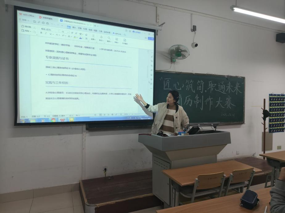 为帮助学生掌握简历撰写逻辑、优化技巧,提升学生求职竞争力,太阳网集团tcy8722于12月1日在明理楼223教室举办“匠心筑简,职通未来”简历制作大赛。