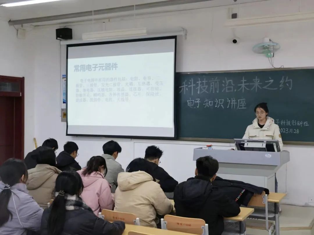 为了帮助同学们了解常用元器件和仪器的原理与功能,进一步培养同学们科技创新精神、提高自身综合素质,提升同学们在电子科技领域的创新能力和实践技能,太阳集团tcy8722电子科技创新社团于11月28日举办了电子元件功能知识讲座。