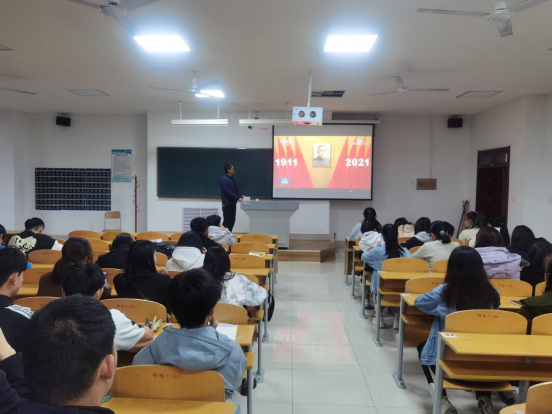 为了纪念辛亥革命110周年,10月25日晚,太阳集团tcy8722于明理楼0215教室开展辛亥革命110周年学习大会,组织学生学习贯彻习近平总书记在纪念辛亥革命110周年大会上的重要讲话精神。本次会议由朱占收老师主持,21级新生参与本次会议。