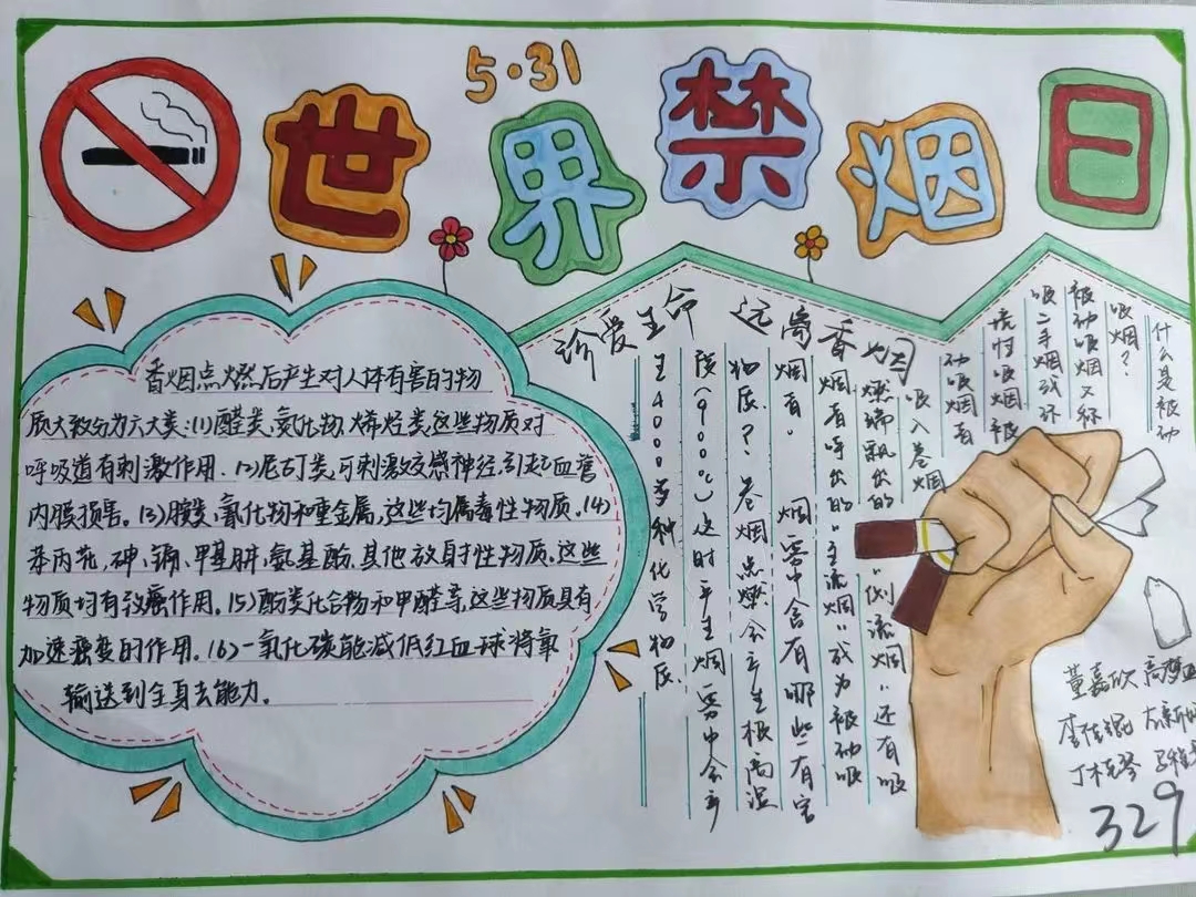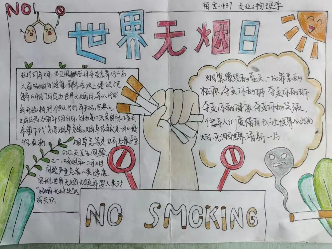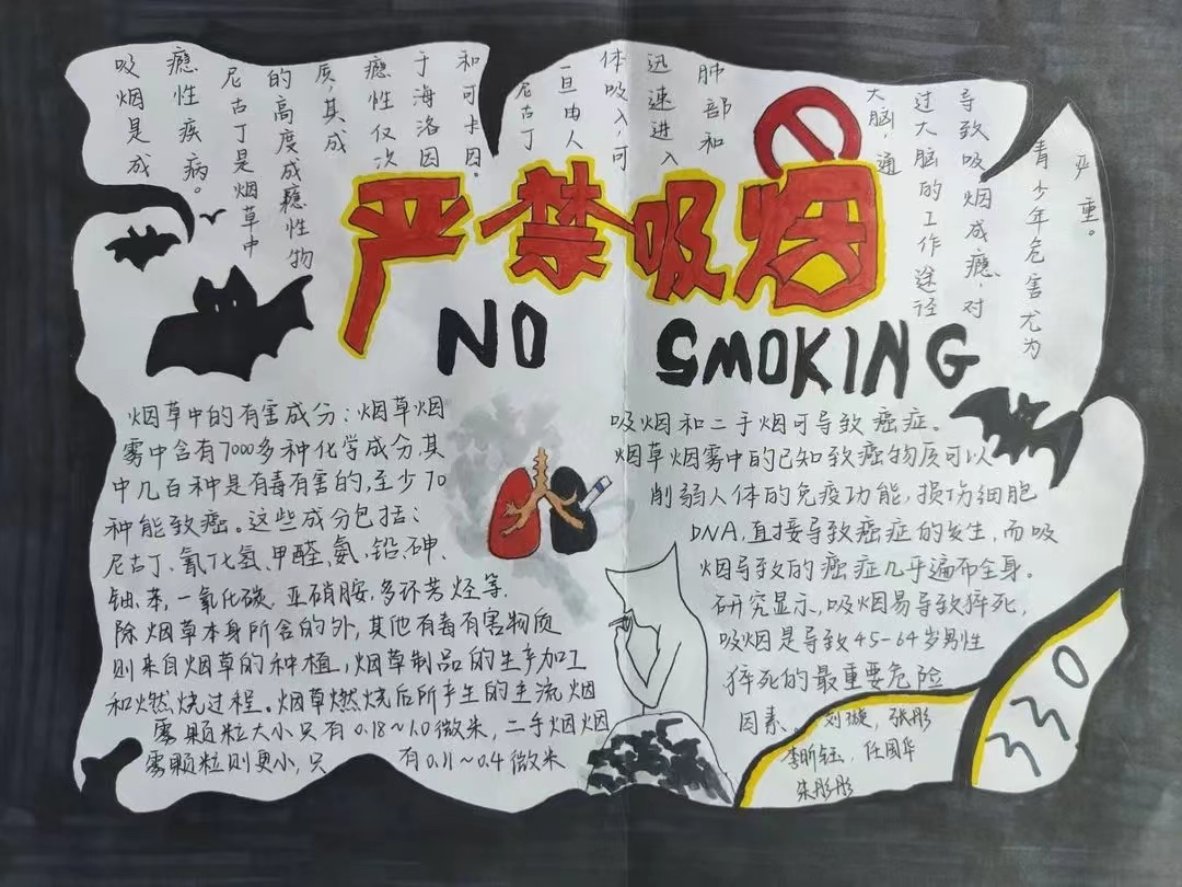 为响应创建文明城市学校禁烟工作的号召,提升我院学子对吸烟危害的意识,太阳集团tcy8722于5月举行“禁烟”手抄报征集展评活动,本次活动由太阳集团tcy8722宣传部举办,21级学生全部参加。