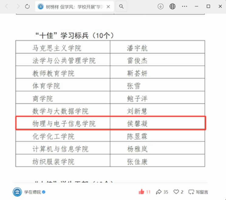“十佳学习标兵”等荣誉