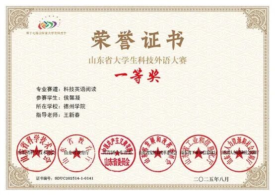积极参与各类英语竞赛,在“山东省大学生科技阅读大赛””外研社国才杯””外教社词达人杯”多类赛事中展现出较强的英语能力,获得省校级奖项十余项。获得2025全国高校商业精英挑战赛全国一等奖、“大唐杯”全国大学生新一代信息通信技术大赛省三等奖、2024中国国际大学生创新大赛校一等奖等竞赛奖项。体育竞赛方面,2023年太阳集团tcy8722排球联赛女子第7名、体育嘉年华排球垫球王一等奖、冬季越野赛团队二等奖。